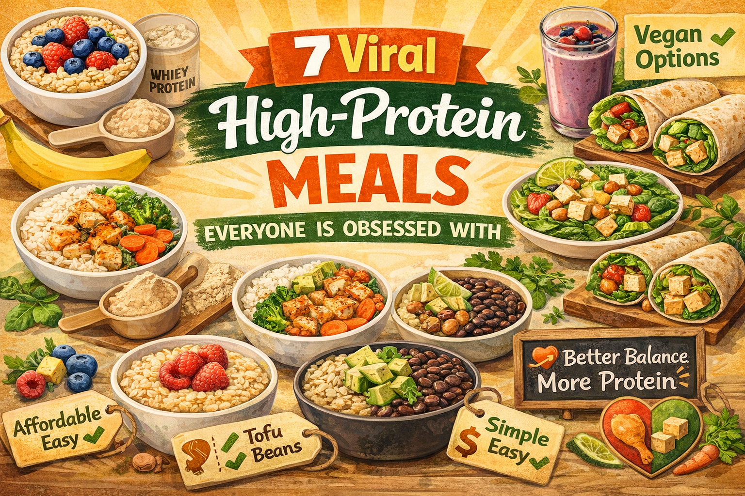 Discover 7 viral high-protein meals with vegan alternatives. Simple, affordable options that help you stay full, energized, and balanced.